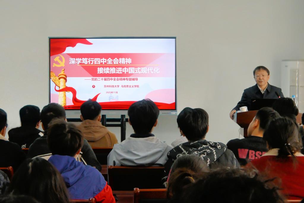 12月3日下午,校党委书记姜朋明在江枫校区金螳螂楼205智慧教室,以《深学笃行党的二十届四中全会精神,接续推进中国式现代化》为主题,为土木工程...