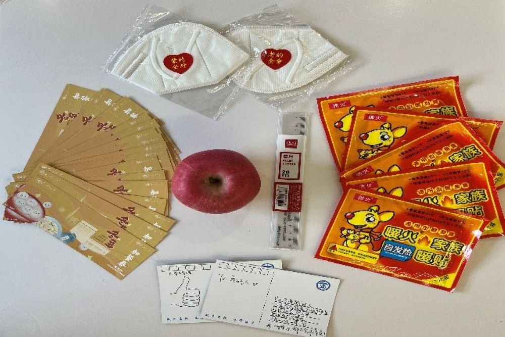 活动伊始,刘志强代表NG28 向正在备考的学子表达了慰问、鼓励和期望之情,他充分肯定了同学们克服困难、脚踏实地、不畏艰难险阻、勇于追求理想的精神,他希望各位同学踔厉奋发,勇毅前行,不负青春韶华,实现远大理想。随后,院领导一起为考研学子分发带着满满美好祝愿的“考研加油包”,其中包含寓意“暖”意洋洋的暖宝宝、“罩”气蓬勃的口罩、“苹”安上岸的苹果、“百尺竿头更进一步”的直尺、冬至夜加餐券以及来自辅导员、学弟学妹们为2023届考研学子手写的祝福卡片。
