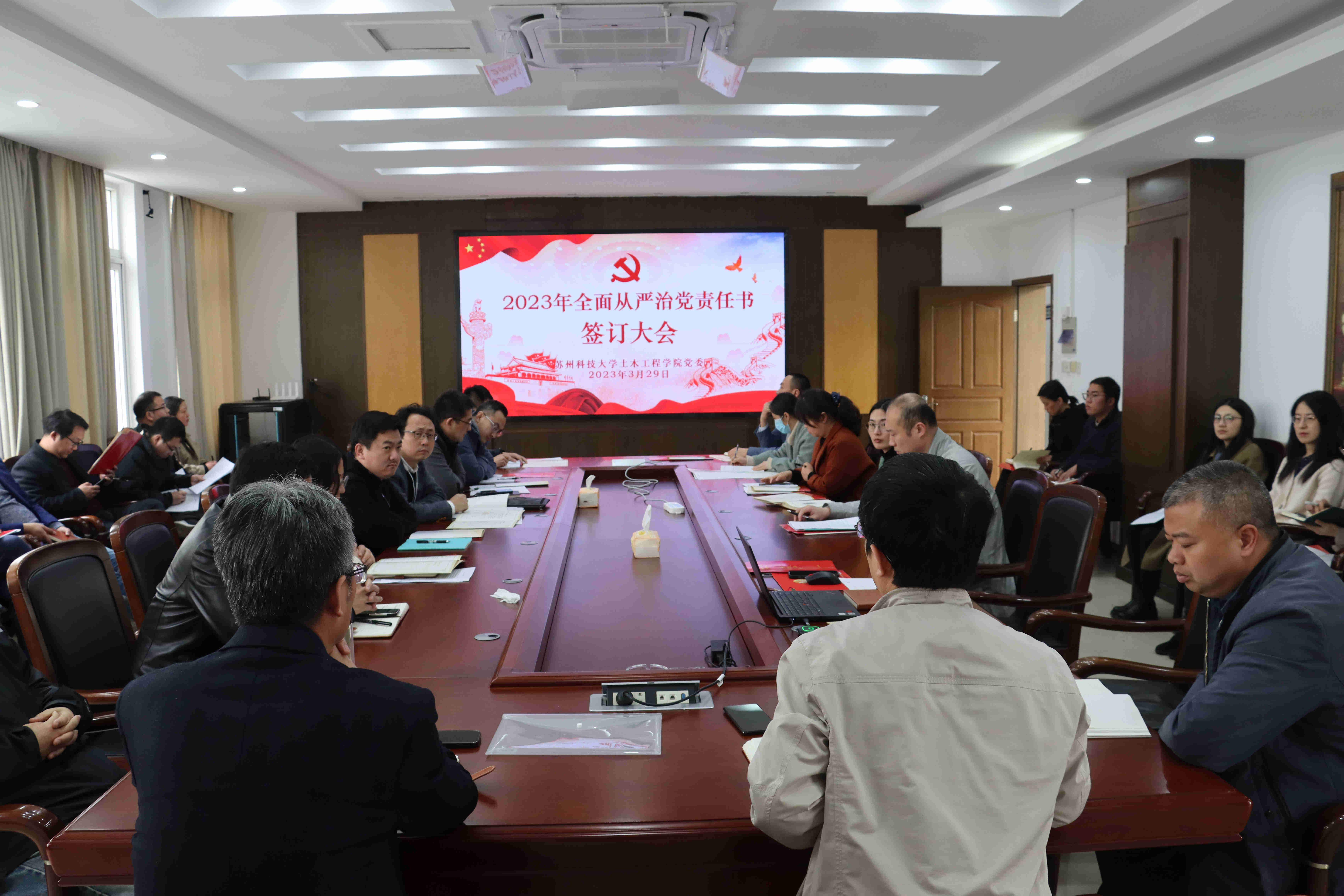 作者:廖想想 图片作者:廖想想 发布日期:2023-03-30 浏览:次3月29日下午,我院于土木北楼会议室分别召开了全面从严治党责任书、安全责任书、目标责任状签订大会,NG28 领导及全体中层干部出席。