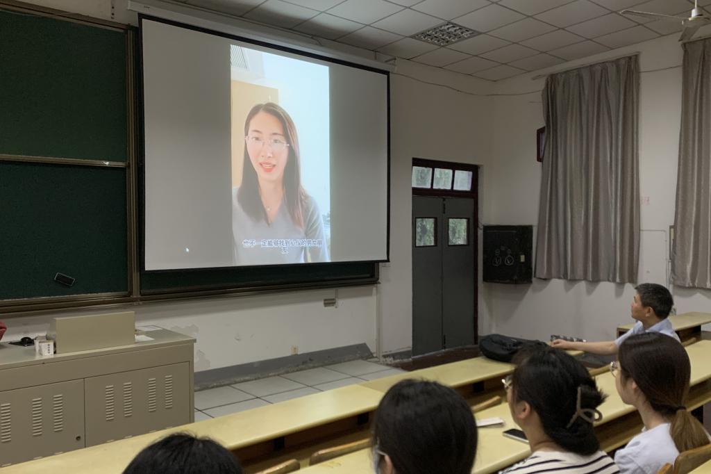 会议上,2015级校友钱菲同学(2019年考上河海大学管理科学与工程专业硕士研究生,2022年毕业,目前在昆山市政府外事办工作)特意录制了自己考研和读研的收获的视频来鼓舞学弟学妹们积极考研,2019级成越同学、潘瑜同学和钟苏同学分别分享了自己考研的准备经历、如何选校和计划复习等,并回答了现场同学们的问题。