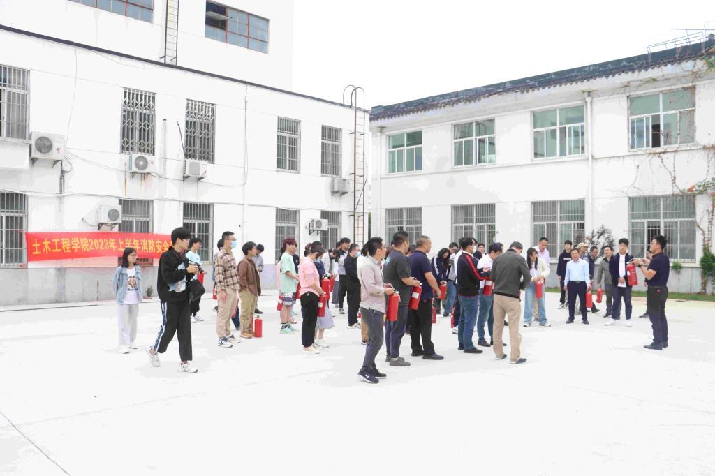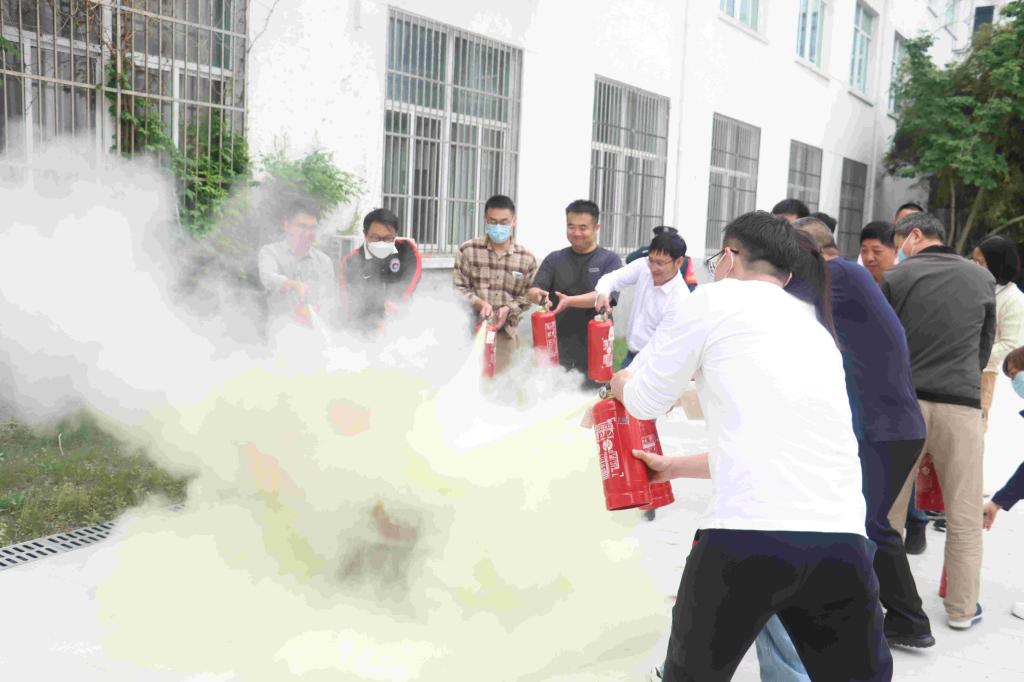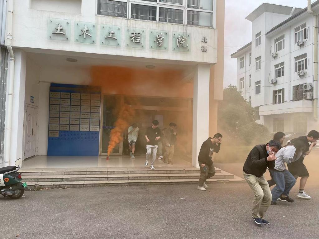 卢致远在培训中介绍了近几年在我省高校中发生的消防安全事故案例,带领我院师生共同学习了消防安全相关知识、常见消防设备及器材的使用、灭火技巧等。随后,保卫处工作人员在土木北楼使用烟雾弹模拟了火灾场景,参加培训的师生在保卫处工作人员的指挥下,从土木北楼学术报告厅有序疏散至室外。在金螳螂土木工程创新实践中心东广场,卢致远对我院师生进行常用灭火器的使用培训,我院师生使用灭火器对模拟起火点进行灭火实操演练。