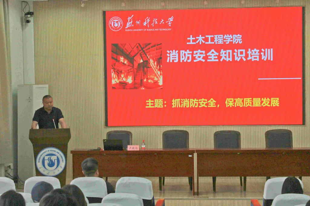 作者:廖想想 图片作者:李之坤 发布日期:2023-05-25 浏览:次为提高全院师生的消防安全意识,强化消防安全技能,我院于5月24日在NG28娱乐 北楼学术报告厅举行消防安全知识培训及消防演习活动,保卫处消防管理科副科长卢致远应邀主讲。NG28 实验中心、结构工程重点实验室、道路工程中心等重点场所全体实验人员,NG28 党委书记刘志强、常务副院长赵宝成、党委副书记兼副院长刘建峰出席培训会,全体坐班制人员及各教学单位教师代表、各研究生及本科生班级学生代表参加培训及演习,培训由NG28 党委副书记兼副院长刘建峰主持。