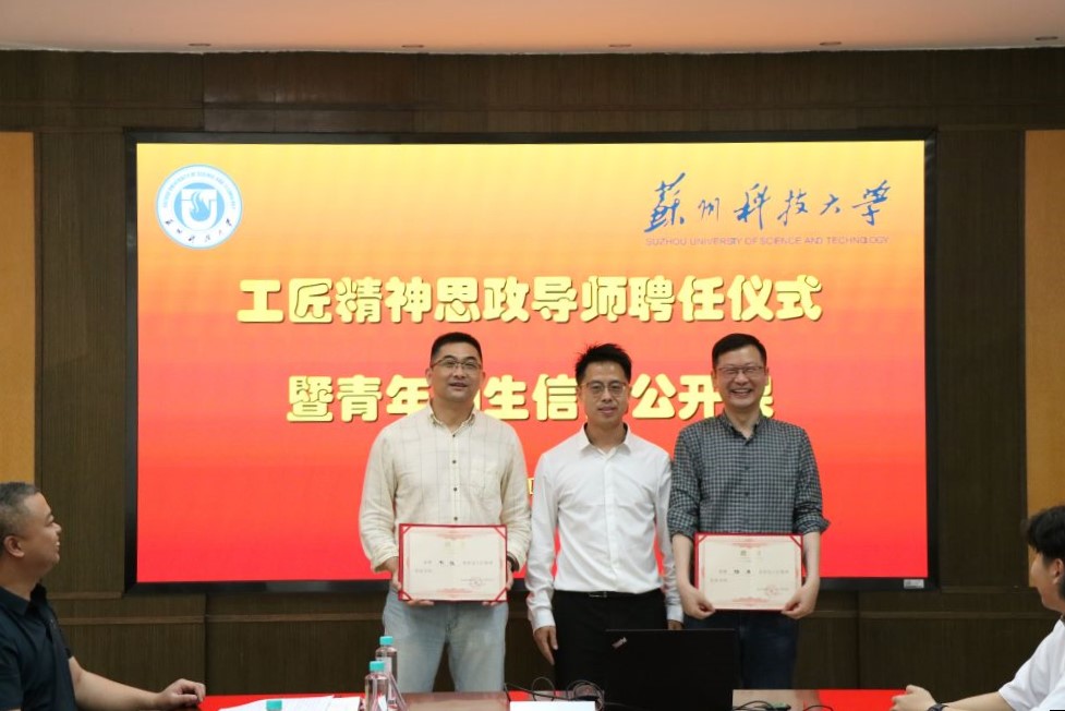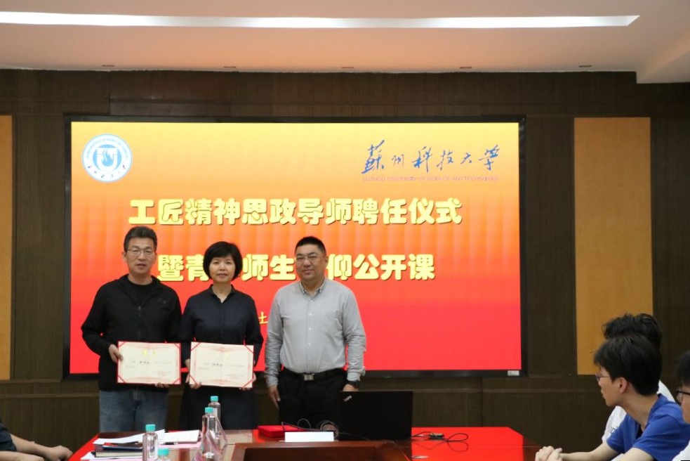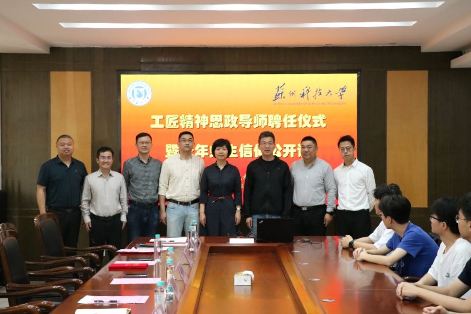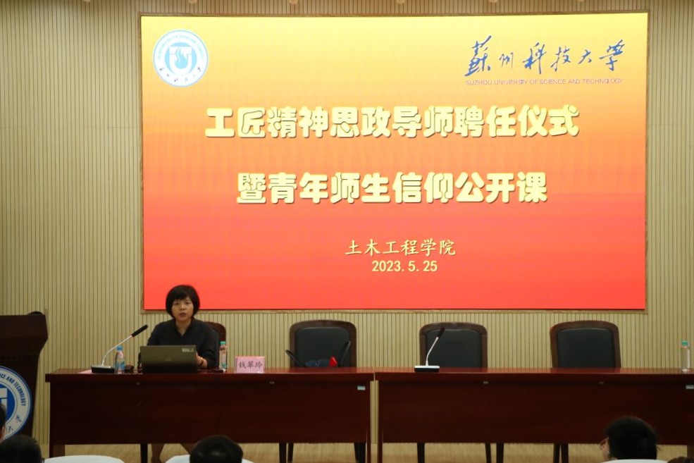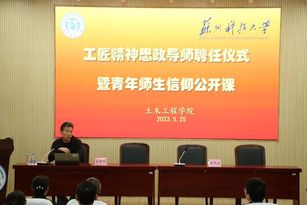 作者:王谦菲 图片作者:李之坤 来源:NG28娱乐 发布日期:2023-05-26 浏览:次为了大力弘扬劳模精神、劳动精神、工匠精神,培育青年学子的职业精神和职业素养,5月25日上午,“导师领航,匠心筑梦”工匠精神思政导师聘任仪式暨青年师生信仰公开课在NG28娱乐 二楼会议室、报告厅举行。江苏省劳动模范董建军,苏州市劳动模范钱翠玲,校党委学生工作部、学生工作处处长张承祖,校团委副书记(主持工作)黄凯,院党委书记刘志强,院党委副书记兼副院长刘建峰,院建工系党支部书记韦俊,院党委书记助理兼道岩系党支部书记陆勇,全体辅导员、学生代表参加了此次活动。会议由刘建峰主持。