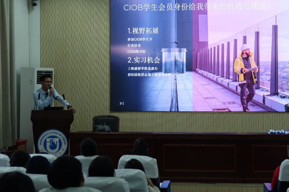 袁诗雨女士向工程管理系2023级大一新生介绍了英国皇家建造学会的历史、会员在全球的影响力、成为学生会员的优势与方法等。CIOB明日之星梅振源先生基于自己成长路程,讲解如何“成为一名拥有全球视野的建造管理专业人才”。工程管理专业大学一年级的新生反响热烈,对加入CIOB学生会员表示出浓厚的兴趣。本次报告开拓了工程管理专业学生的国际视野,激发了同学们立志成为优秀管理人才的学习热情。