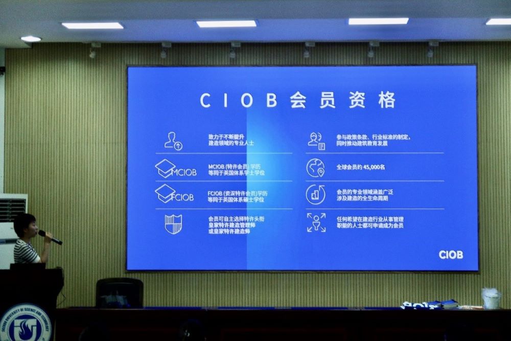 CIOB成立于1834年,是国际工程建造行业具有深远影响力的行业学会。本次,CIOB中国区会员资格及高校关系经理袁诗雨女士、东亚区CIOBNG28 经理吴琼女士及优秀代表华南区明日之星梅振源先生一行来访。