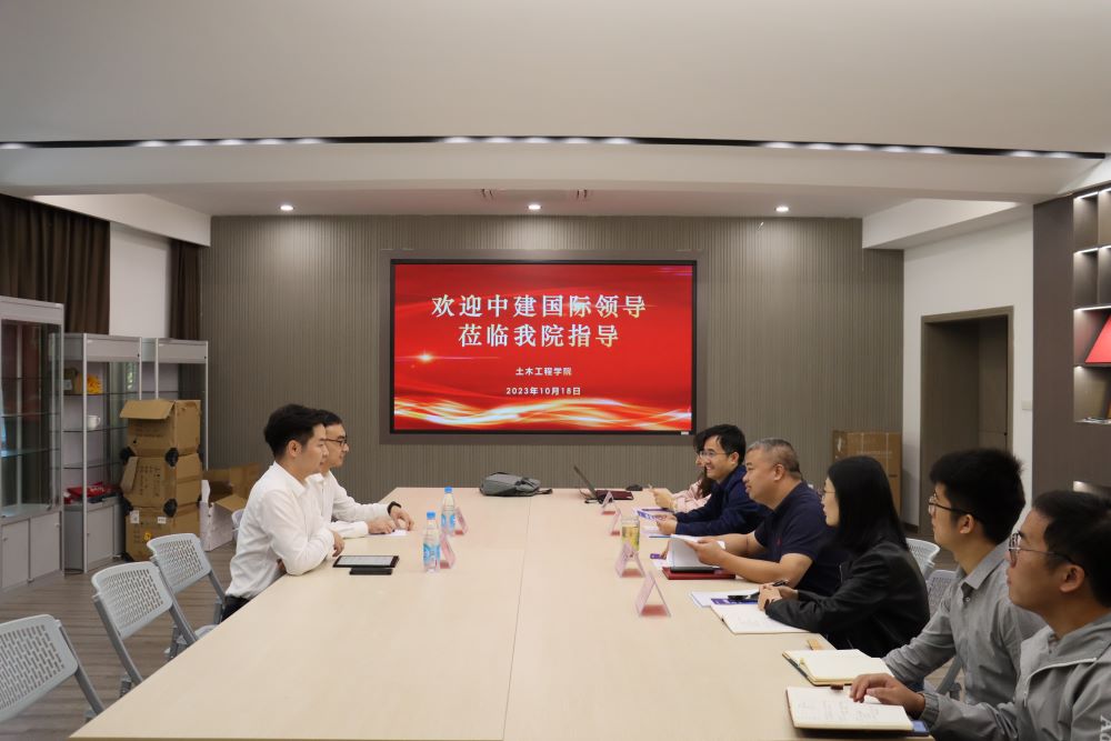 刘志强介绍了NG28 历史沿革、师资队伍、专业建设、人才培养、办学成果等情况,期待与中建国际在党建共建、人才培养、科研合作等方面深入合作。刘建峰介绍了近年来相关专业毕业生情况,表示将加强与优质企业的交流活动。