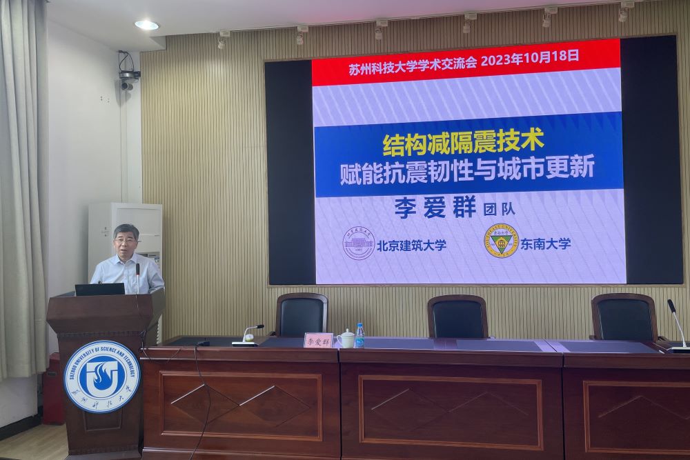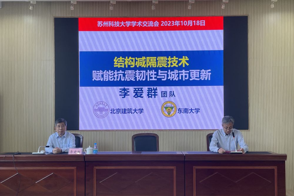报告过程中,李爱群教授介绍了北京建筑大学和东南大学团队近年来在韧性城市发展中减隔震技术研究及应用的研究工作,包括城市防灾的挑战、韧性城市理念的提出、韧性建筑与减隔震技术进展等,提出要认清地震的随机性和破坏性、要制定科学的城市综合防灾规划、要保障结构和生命线工程的防灾能力。报告高屋建瓴,现场学术氛围热烈,多位参会教师和研究生就报告内容与李爱群教授作了深入交流。
