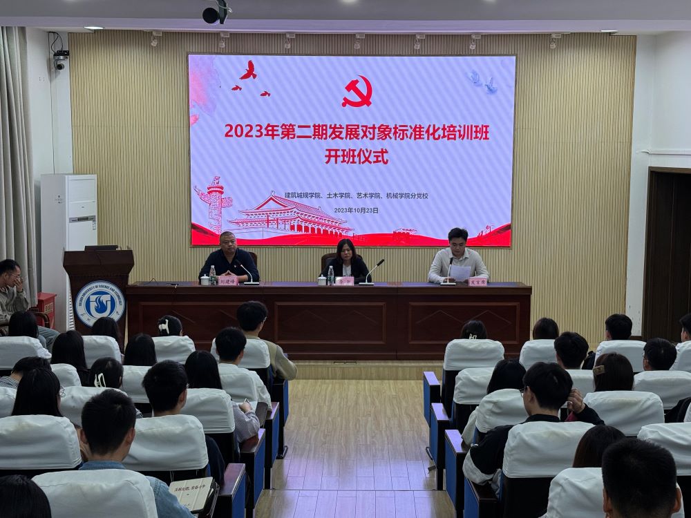 作者:王烽圣 图片作者:吴宇恒 发布日期:2023-10-24 浏览:次为切实加强对党员发展对象的培养和教育,严把发展党员“入口关”“质量关”,全面做好新形势下党员发展工作,10月23日晚,建筑城规NG28 、NG28娱乐 、艺术NG28 、机械NG28 分党校在NG28娱乐 北楼报告厅举行2023年第二期发展对象标准化培训班开班仪式,建筑与城市规划NG28 党委副书记兼副院长李敏、NG28娱乐 党委副书记兼副院长刘建峰出席开班仪式,各NG28 组织员以及68名发展对象参加了开班仪式。仪式由刘建峰主持。