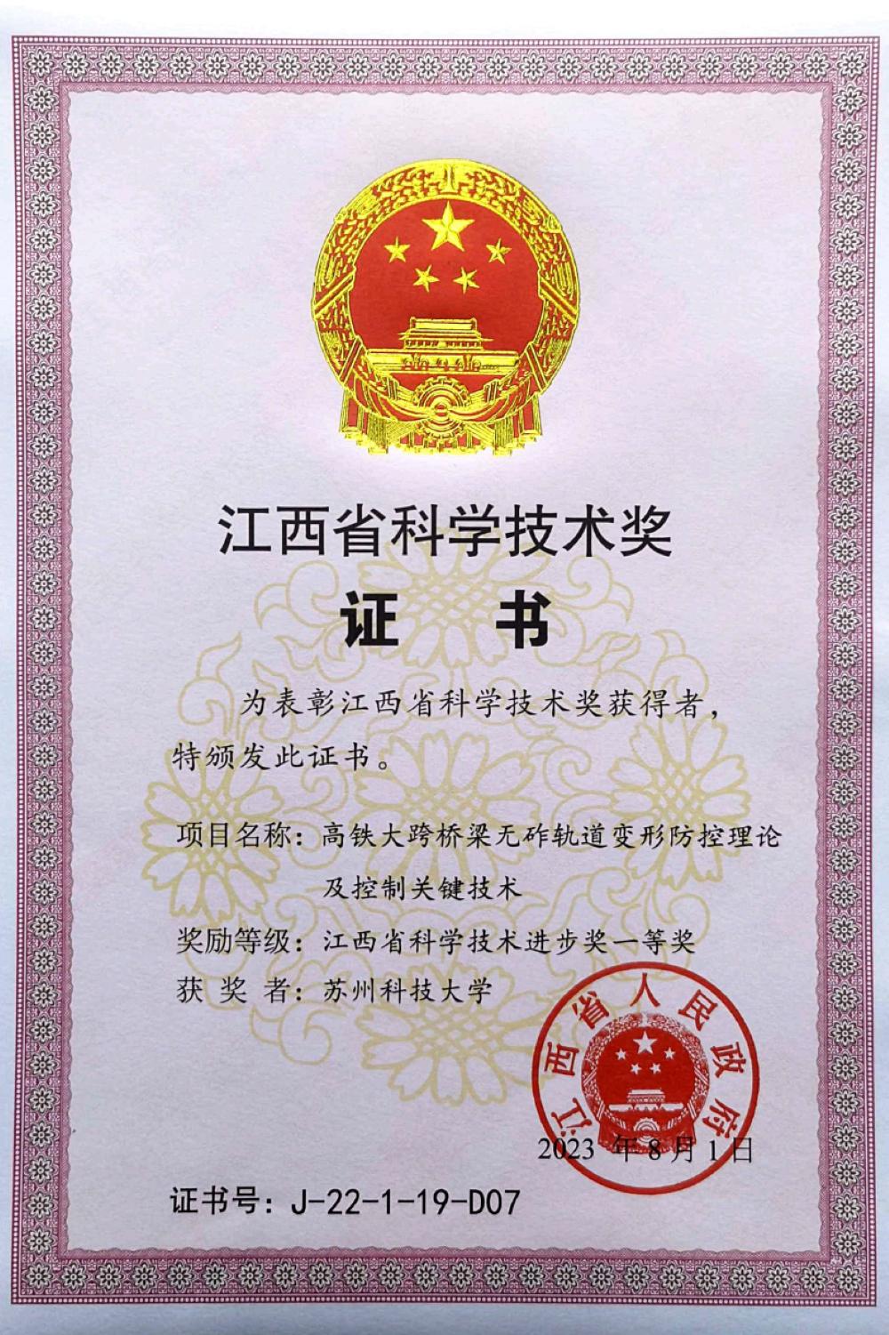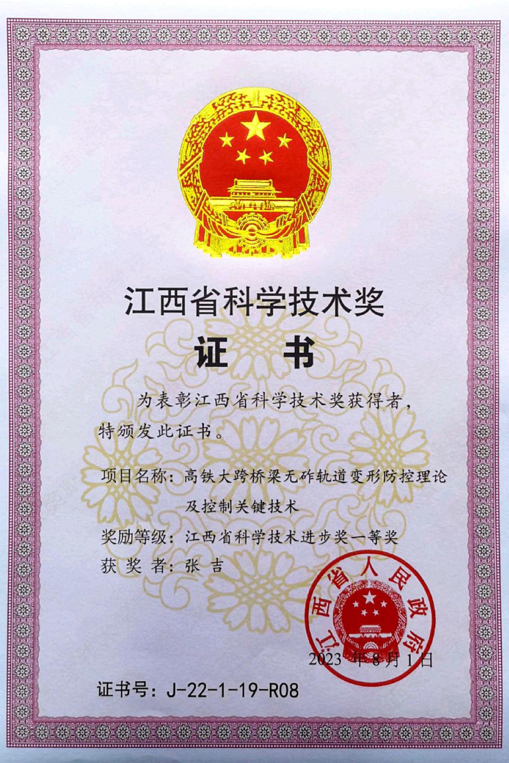 作者:申燕 来源:NG28娱乐 发布日期:2023-10-26 浏览:次近日,江西省人民政府颁发了2022年度江西省科学技术奖。由昌九城际铁路股份有限公司牵头,我校NG28娱乐 张吉博士参与联合申报的《高铁大跨桥梁无砟轨道变形防控理论及控制关键技术》荣获科技进步一等奖。