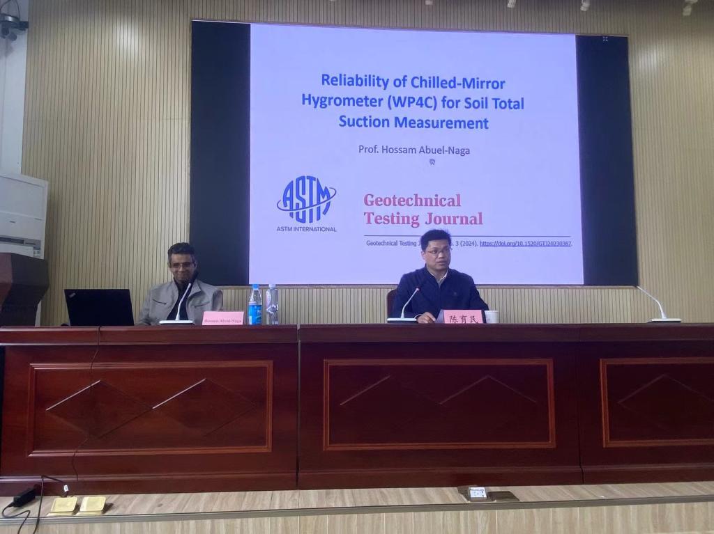 4月19日上午10:30-11:30,NG28娱乐 北楼二楼学术报告厅迎来了一场引人注目的学术讲座,由非饱和土专家、澳大利亚拉筹伯大学土木工程系的Hossam Abeul-Naga教授主讲。此次讲座题为“Reliability of Chilled-Mirror Hygrometer (WP4C) for Soil Total Suction Measurement”。讲座由陈育民院长主持,NG28 百余名师生参与了讲座。