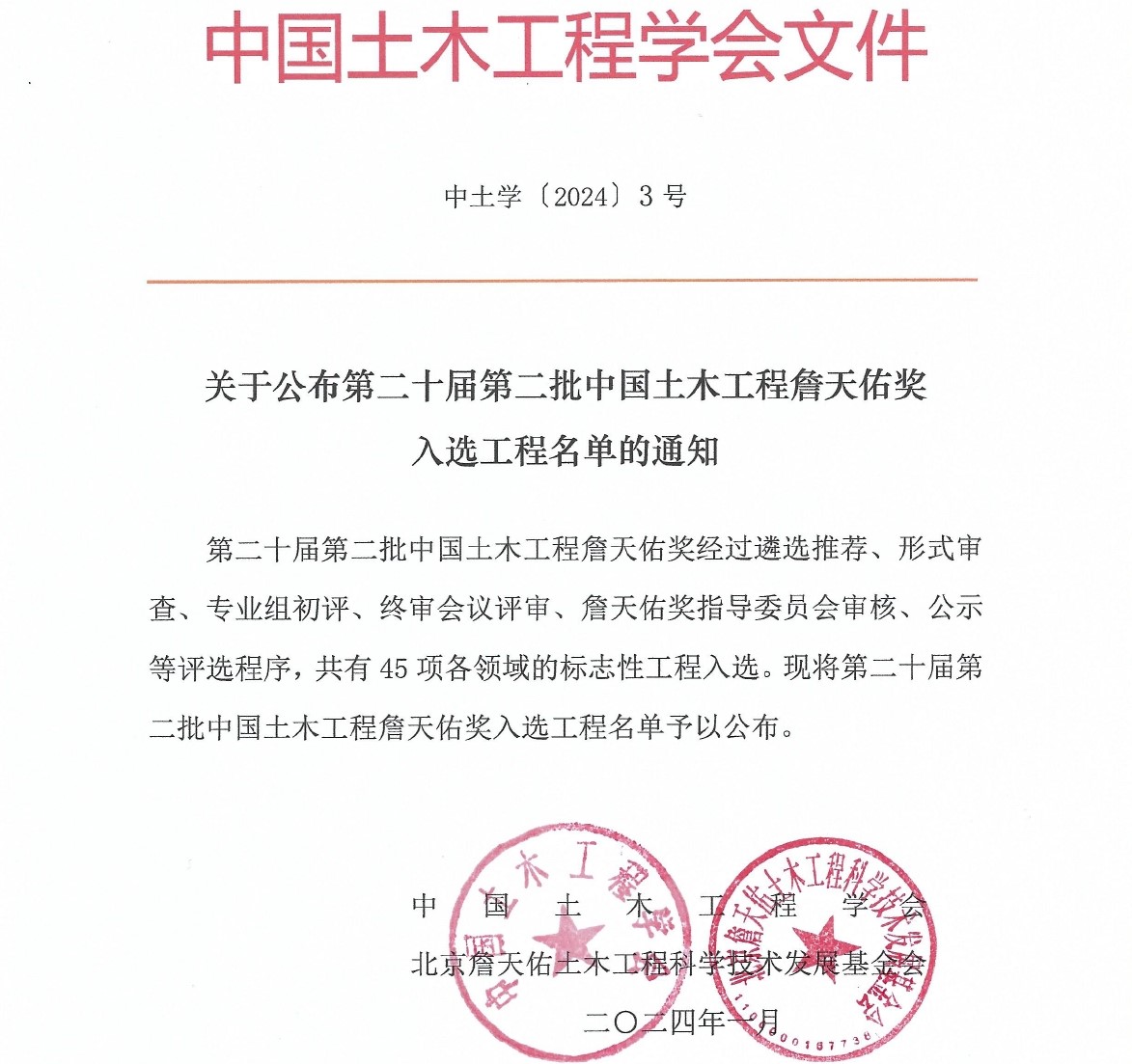 作者:姚江峰 张尚 王烽圣 图片作者:姚江峰 张尚 王烽圣 来源:NG28娱乐 发布日期:2024-10-25 浏览:次10月22日至23日,中国土木工程学会2024年学术年会、第二十届中国土木工程詹天佑奖颁奖大会暨《中国大百科全书(第三版)·土木工程》首发仪式在苏州举行。会议期间,由我校唐柏鉴教授团队主要参与完成的嘉兴市文化艺术中心项目荣获第二十届中国土木工程詹天佑奖。我校还联合承办了第5和第11分论坛。