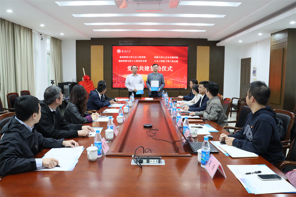 随后,NG28娱乐 道岩系党支部与河海大学土木与交通NG28 土木教工第三党支部签订了党建共建协议,并为党建共建单位揭牌。仪式后双方进行了深入的交流,表示将积极开展共建活动,协同增强党组织活力,融合发挥党建引领作用,推动双方NG28 相互促进、相互提升,为经济社会高质量发展贡献力量。