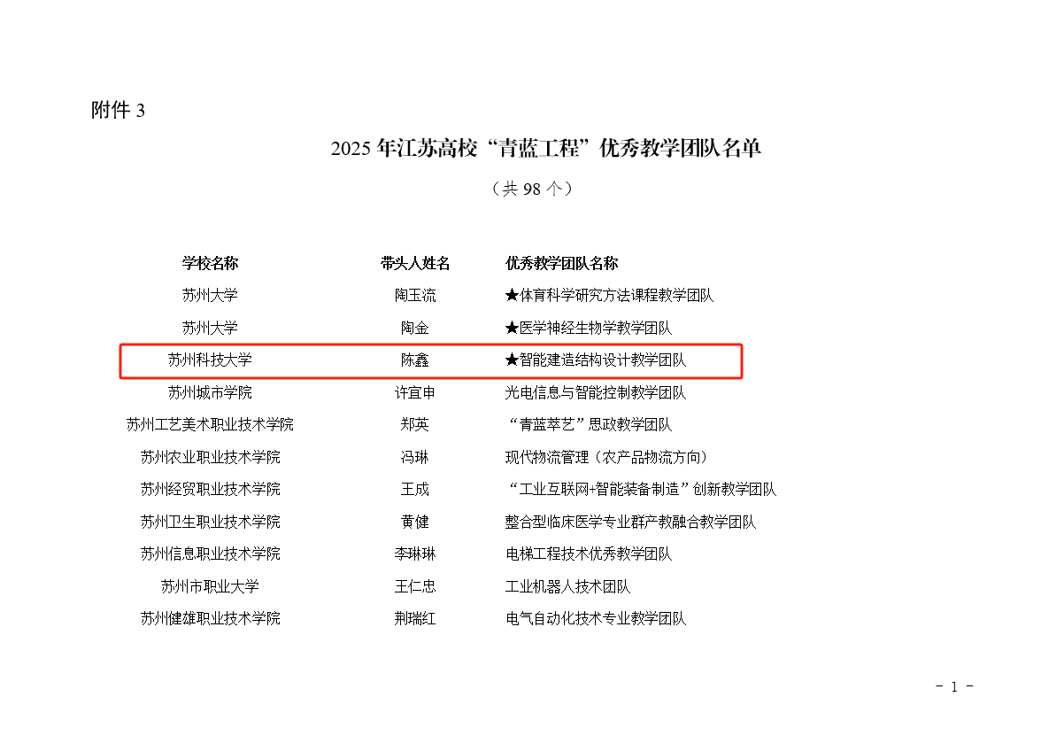 日前,2025年江苏高校“青蓝工程”培养对象进行名单公示,我院陈鑫教授牵头的“智能建造结构设计教学团队”入选优秀教学团队培养对象,翟相华副教授入选优秀青年骨干教师培养对象。
