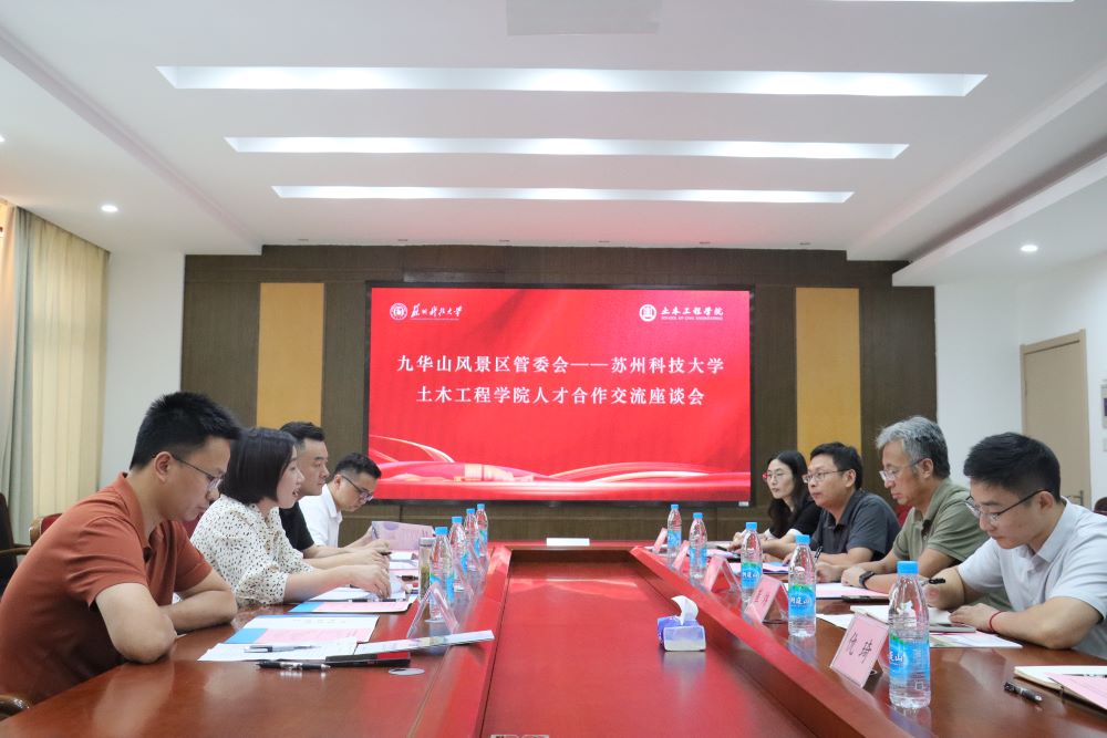 潘治代表NG28 向燕丽一行表示热烈欢迎,并简要介绍了NG28 的专业特色与育人成果。崔炜围绕学校人才培养及校企协同机制,重点介绍了当前校园招聘与就业引导工作的推进情况。燕丽就九华山风景区的发展现状与人才需求作了详细说明,并结合土木工程、工程管理等专业特点,面向毕业生开展精准引才推介。赵宝成在交流中强调,风景区在生态保护与开发中涉及诸多工程技术课题,与NG28 学科方向高度契合,希望未来双方能在科研协作、实习就业一体化建设中实现深度联动。