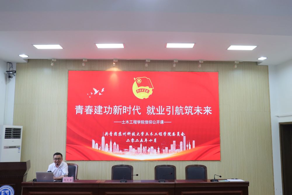 随后,与会人员共同观看了九华山世界地质公园宣传片,九华山风景区管委会人才服务中心主任柯天青围绕“青春建功新时代,就业引航筑未来”主题面向NG28 团员青年开展信仰公开课。柯主任结合九华山的地质保护与可持续发展实践,激励青年学生坚定理想信念、锤炼专业本领,将个人职业发展融入生态文明建设和区域发展大局。现场气氛热烈,学生积极互动,展现出新时代青年的责任意识和使命担当。