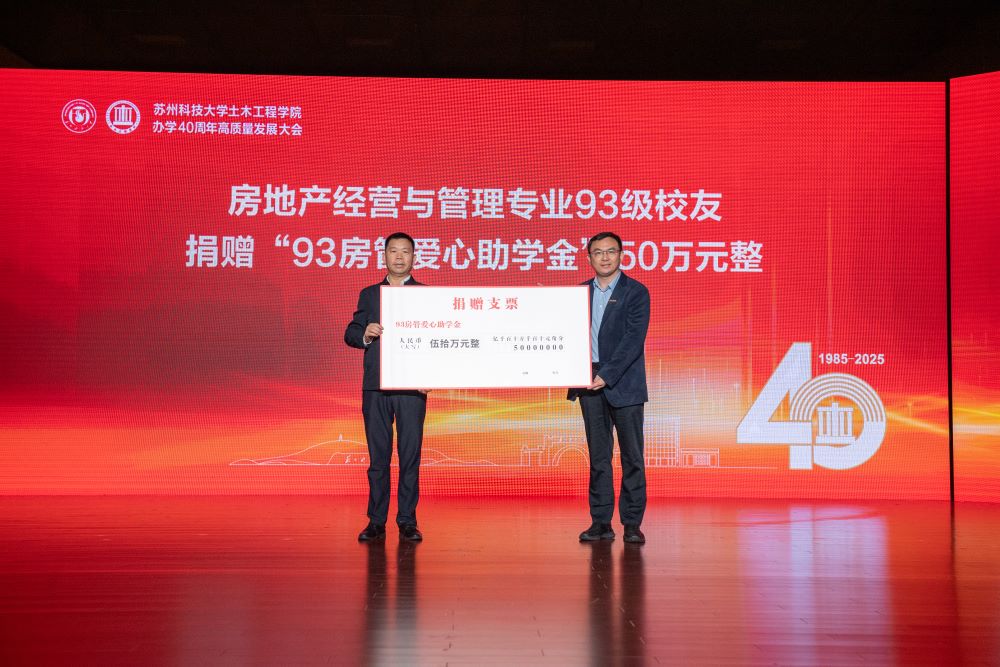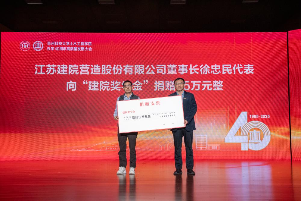 苏州国动防护研究院执行院长、江苏瑞宁智能科技有限公司董事长龚瑞良注资捐赠“钱七虎奖学金”,刘美云代表房地产经营与管理专业93级校友捐赠“93房管爱心助学金”,江苏建院营造股份有限公司董事长徐忠民捐赠“建院奖学金”,闫铁锁和夫人秦秀琴捐赠“德智创新”奖教学金。校教育发展基金会秘书长曹岩代表学校接受捐赠。