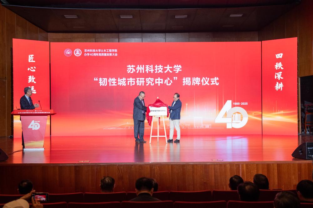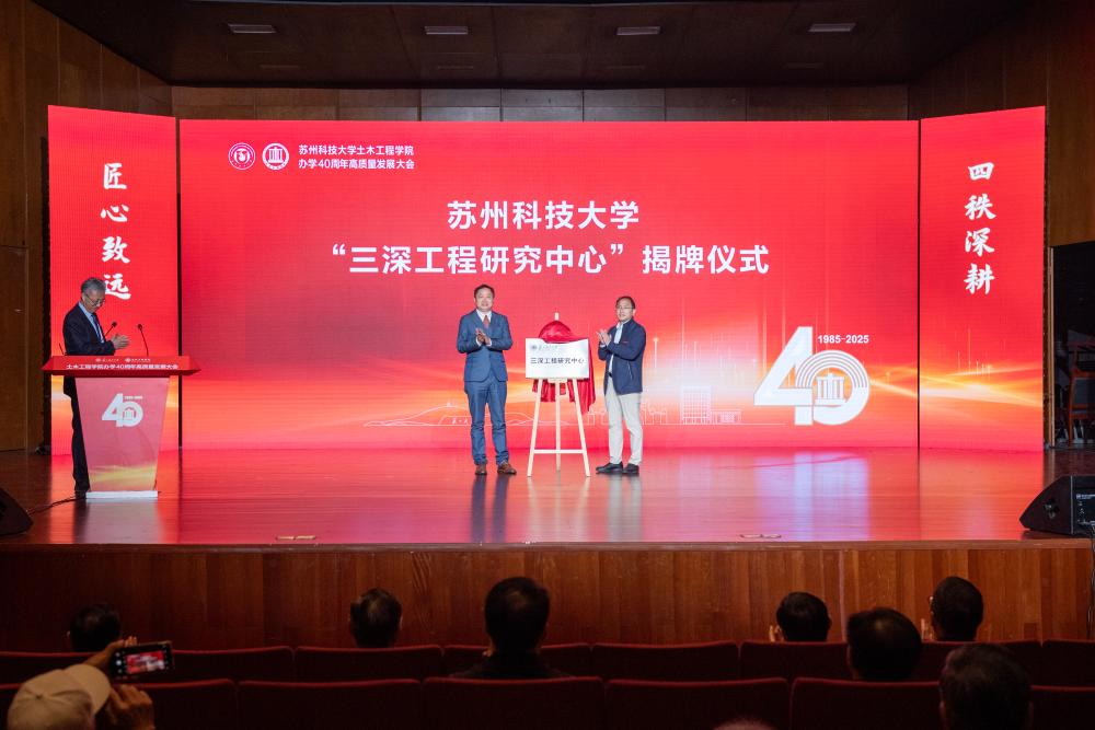 大会上,生物建造研究中心、三深工程研究中心、韧性城市研究中心揭牌成立,将聚焦绿色低碳、深地深海深空工程、智慧城市等前沿方向,为NG28 高质量发展注入新动能。科技产业处处长胡伏原、NG28娱乐 院长陈育民、蒋明镜教授、田石柱教授共同为三个中心揭牌。