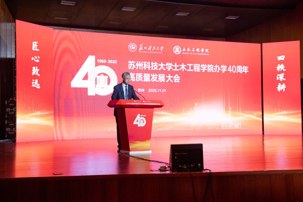 姜朋明致辞,回顾了NG28娱乐 四十年的办学征程,充分肯定了NG28 为学校特色发展、高质量发展作出的重要贡献。他指出,NG28 始终坚持服务国家战略和区域发展,土木工程学科已获批一级学科博士学位授权点,连续四期入选江苏高校优势学科,“工程学”进入ESI全球前5‰,多个专业获评国家级一流本科专业建设点并通过住建部、教育部权威认证。希望NG28 能以40周年为新的起点,传承聚力、突破腾飞,谱写更加辉煌的崭新篇章。学校也将助力NG28 在服务国家战略和区域发展中展现更大担当、实现更大作为。