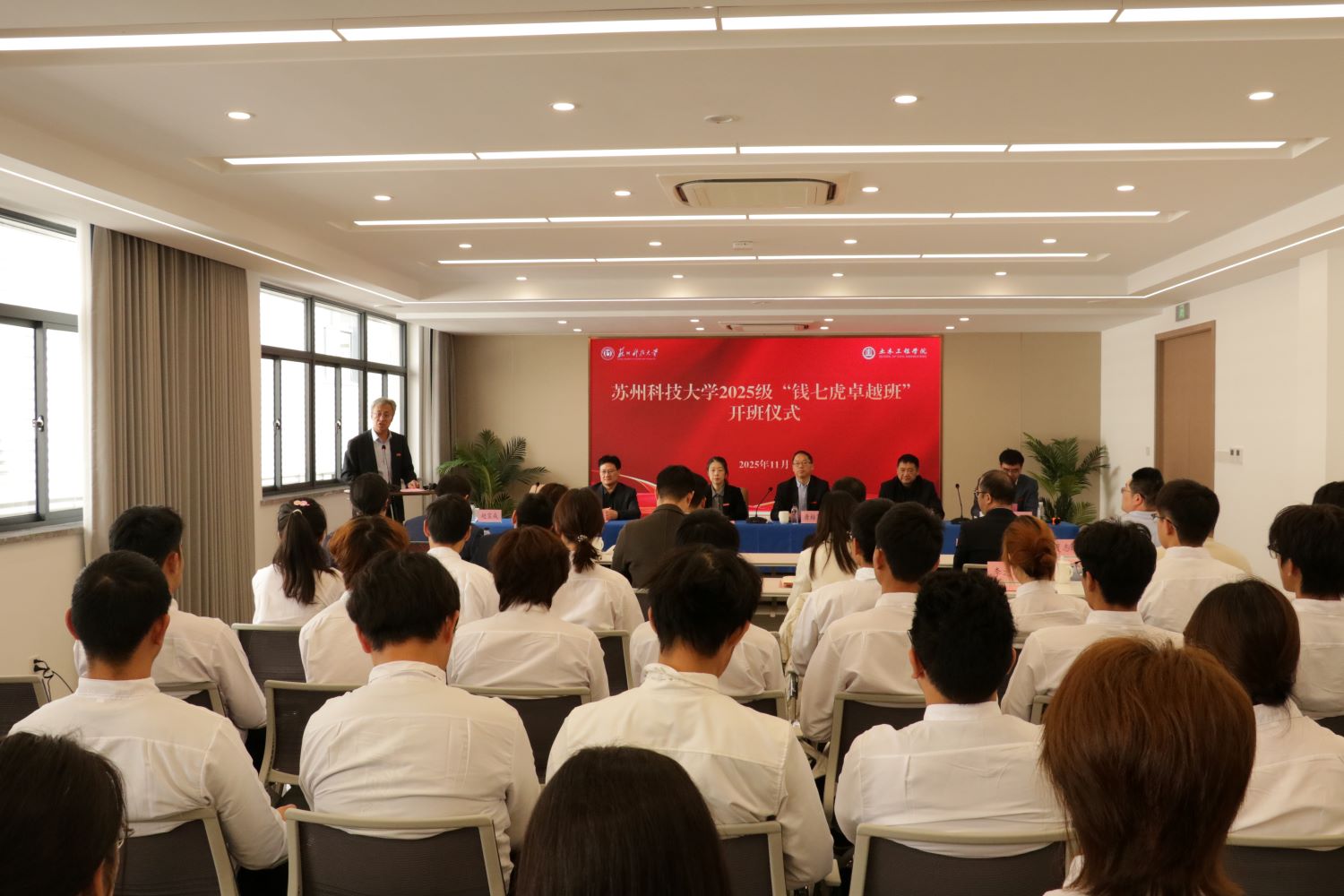 作者:宫淑阳 图片作者:李之坤 来源:NG28娱乐 发布日期:2025-11-28 浏览:次11月28日上午,我校2025级“钱七虎卓越班”开班仪式在江苏瑞宁智能科技有限公司新质生产力创新中心举行。校党委常委、副校长崔雪丽,校党委常委、副校长、钱班班主任唐柏鉴,江苏瑞宁智能科技有限公司董事长龚瑞良,钱七虎院士团队成员、苏州国动防护研究院首席专家刘建永,校党委组织部、党委宣传部、教务处、学生处、NG28娱乐 等单位负责人、企业代表、家长代表,2025级“钱七虎卓越班”全体新生和教师代表参加仪式。仪式由NG28娱乐 党委书记赵宝成主持。