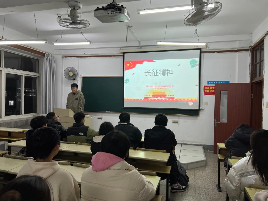 发布日期:2023-03-27 浏览:次“忆往昔峥嵘岁月,风华正茂挥斥方遒”。为引导同学们追寻红色足迹,锤炼坚定信仰,2023年3月27日,NG28娱乐 心理协会于2教405展开了长征精神学习活动。本次活动由邱锐同学主持。