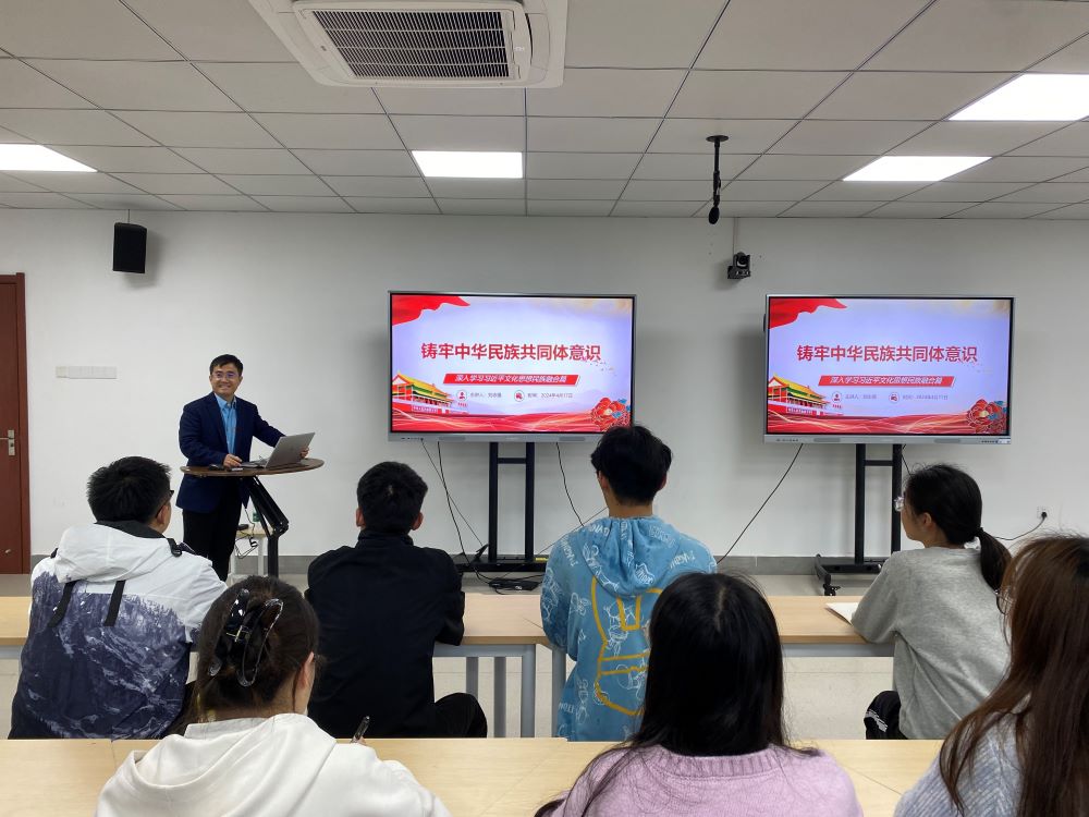 刘志强从“习近平文化思想对增强中华民族凝聚力具有重大意义”“铸牢中华民族共同体意识是习近平文化思想的重要组成部分”“以学习贯彻习近平文化思想的实际行动推动铸牢中华民族共同体意识工作”三个方面详细阐述了铸牢中华民族共同体意识的战略意义、丰富内涵和实践途径。他强调,广大同学要深入学习贯彻党关于加强和改进民族工作的重要思想,树立休戚与共、荣辱与共、生死与共、命运与共的共同体理念,不断增强对伟大祖国、中华民族、中华文化、中国共产党、中国特色社会主义的认同。