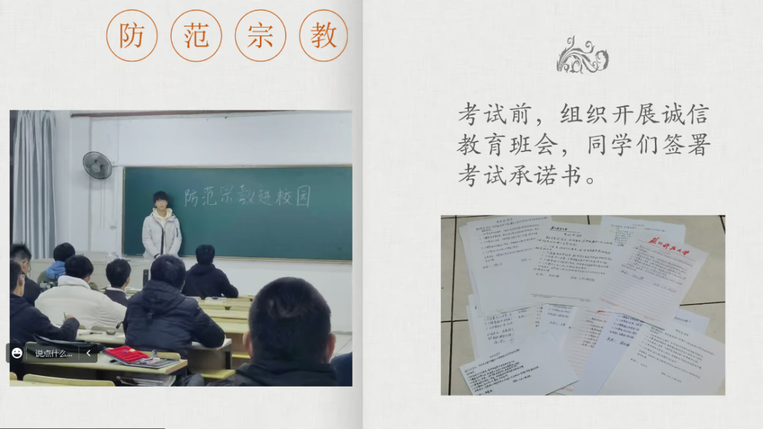在线上答辩环节,每班代表通过PPT展示了本班一年以来的班团组织建设、思想纪律建设、班级学业建设和班级文体建设等各项成果,彰显出各班级团结向上的班风、深厚的班级文化底蕴以及强大的班级凝聚力。