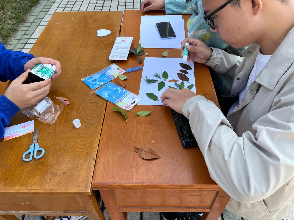 第一关是花样拍照,队员们抽取拍照姿势卡,以“我爱苏科大”为背景进行摆拍,姿势正确照片清晰即可获得一枚盖章。通过拍照打卡的方式记录青春,留下团队协作的美好印记。接下来是视觉注意力大挑战:斯特鲁普图——70秒内说出卡片中的颜色而不是字音;舒尔特方格:140秒内将乱序的数字边读边指出。小组内指派两位成员分别完成两个任务后,即可获取一枚盖章。在秋冬的心事游戏点,队员们通过秋叶创意手工活动,在校园里找寻各式各色秋叶,15分钟内通过DIY手工创意方式形成小组作品,并对作品进行命名,工科生们在这个环节表现出了情感的细腻。最后,负能量回收站和正能量加油站,同学们通过趣味小游戏,宣泄不开心的情绪,同学分享正能量事件,借助于团辅的形式,达到心理健康教育的目的。