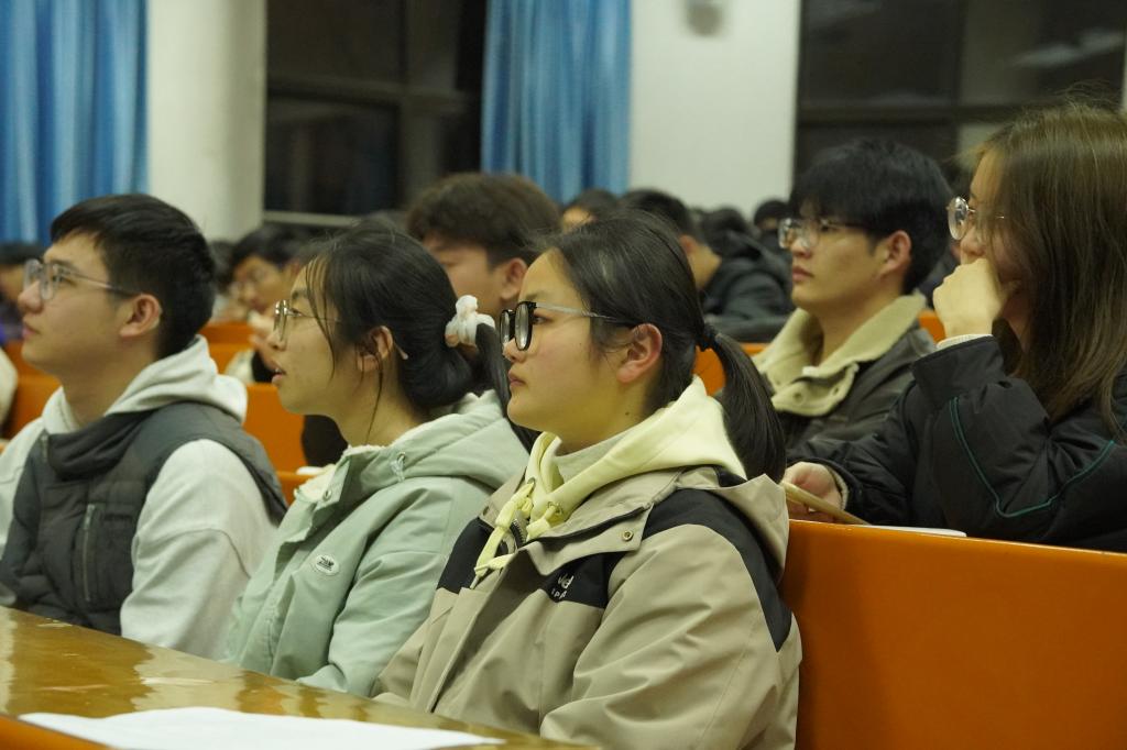 高晟斌同学结合自己的参赛经历,从备赛的前期准备、团队组建、方案设计与优化,到比赛过程中的应对策略和心态调整等方面分享了自己的宝贵经验。他的分享干货满满,赢得了同学们的阵阵掌声。他还鼓励同学们不要害怕困难和挑战,在竞赛中锻炼自己,收获成长。