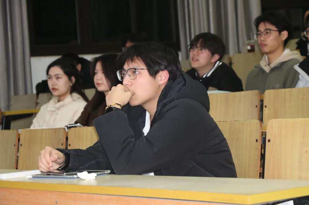 沈峰分别从竞赛目的、发展历程、考试范围等方面为同学们详细介绍了力学竞赛的相关信息。他指出,赛题目类型丰富多样,涵盖理论分析、数值计算、实验设计等多个方面,注重理论与实践相结合,既考查同学们对力学基础知识的掌握程度,又检验大家运用所学知识解决实际问题的能力。他分享了往届的获奖情况,列举了NG28 在过往竞赛中取得的优异成绩。最后,沈老师耐心解答同学们的问题。