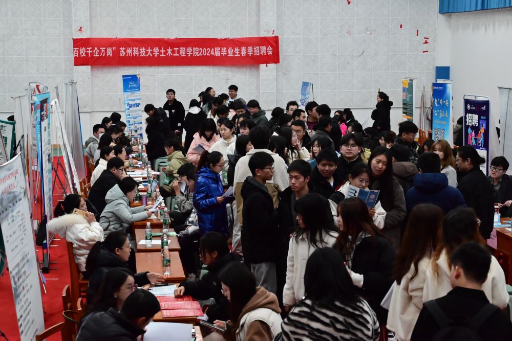 招聘会现场气氛热烈,用人单位通过摆海报、送传单、配讲解等形式,将公司简介、招聘岗位、相关福利及薪资结构等信息送达给应聘毕业生。毕业生们主动了解用人单位NG28、工作环境、薪资待遇、晋升机会等情况,将精心准备好的简历积极投给心仪的企业。本次招聘会共邀请了中建、中铁等省内外近60家优质企业,提供了工程技术、科学研究等高层次岗位逾100个,招聘人数1700余人。据统计,招聘会现场吸引了来自三校区400多名毕业生前来求职应聘,现场投递简历达1100人次,约30人达成了初步就业意向。