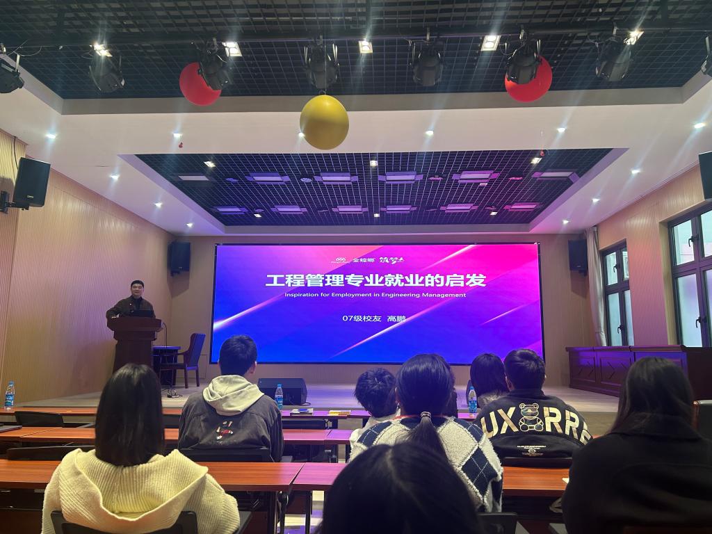 高鹏校友进行了以“建筑业的工作经历及其对工程管理专业学生的启发”为主题的讲座。他结合自己丰富的工作经历,介绍了金螳螂建筑装饰股份有限公司的人才培养模式,并通过“7-2-1模型”向同学们讲解了如何在企业中提升自己的能力,同时也鼓励同学们加强对工程管理专业知识的学习、不断增强自己的实践能力、尽早明确自己的职业生涯规划。
